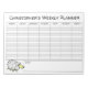 This is a perfect planner for busy families... easy to use and well organized. Each page rips off after use and the new page is ready for the next week. Clear print and personal monogram is fun.