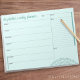 This is a perfect planner for busy families... easy to use and well organized. Each page rips off after use and the new page is ready for the next week. Clear print and personal monogram is fun.