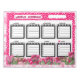 Weekly schedule with pink roses and white dots on crimson background