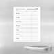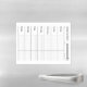 A task planner on a magnetic dry-erase sheet for each day of the week: a to-do list and not-to-be-missed appointments. It can be used on an individual basis in order to fulfill objectives and avoid procrastination, but also to distribute and organize tasks within the family, the office or the home.