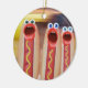 Collage / Mosaic style image with big eyes, big mouths on these hot dog people! Funny Weenie People are quite a site to see! Funny weenie people ornament is available in several shapes.