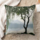 A beautiful landscape of a weeping willow tree against the backdrop of mountains.