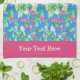 A pretty Kitchen Towel (Tea Towel) that you can personalize, with a pattern of creamy white Mock Orange Blossom and bright pink Weigela on a sky blue background. The design is from a handpainted watercolour by Judy Adamson. You can simply delete the text if you wish.