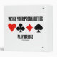 Showcase your wry probabilistic bridge player side with this binder featuring the four card suits along with the bridge recommendation saying "Weigh Your Probabilities Play Bridge". Make others do a double-take with a dose of sound bridge advice the next time you play bridge with this binder.