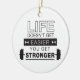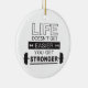 Lightweight, smooth, pure white ornament with nice sheen. Perfect size to be seen from across the room ... and to attract closer inspection! Price was great for ordering enough for the whole family! Clear, bold black design just as requested. Matches the order exactly. Just so nice!