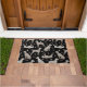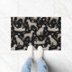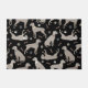 Cute Weimaraner dogs sit, stand and rollover with scattered dog bones and pawprints on a black background.