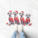 Elegant and athletic Weimaraners, known for their distinctive silver-gray coats, look noble and festive in their Christmas Santa outfits. A beautiful design for Weimaraner owners and sporting dog enthusiasts.