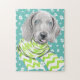 Weimaraner cute puppy with scarf Dog portrait art Jigsaw Puzzle