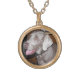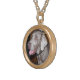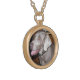 I chose gold plated so that the metal would not react with my skin oils and perspiration. But, I changed the necklace from the gold plated one to a sterling silver. My skin cells will tarnish the silver. But it will not look as bad if some portion of the gold plated necklace somehow became compromised. Zazzle did a find job turning the picture into a pendant for me. As you can see, the colors and the printing of the final product, match the preview. The picture I took is not very clear. But I am pleased with the product I received.
