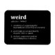 A flexible magnet featuring the dictionary definition of the word 'weird'.