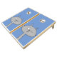 Natural Wood Cornhole Set, Royal Blue and Yellow bags