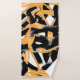 Weird medley of burnt tapes, orange white scratch bath towel set