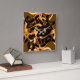 Weird tangle of burnt ribbons, black and orange square wall clock