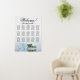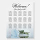 This stunning 15 table wedding seating chart features a romantic design with a single long-stemmed dusty blue or pale powder blue colored rose lying on its side reflecting in a pool of water. The elegant script title reads "Welcome! please find your table" with the names of the couple and wedding date at the bottom. This chart has space for 150 guests with 10 seats per table. Wonderful way to add elegance, class, and style to your wedding reception while making it easy for your guests to find their seats.