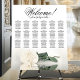 Add beauty, romance, and style to your wedding reception with this 18 table seating chart, which has space for 180 guests with 10 seats per table. The beautiful modern floral design features a single long-stemmed ivory, white, or cream colored rose lying on its side reflecting in a pool of water. The title is written in elegant script calligraphy and reads: Welcome! Please find your, with the names of the couple and wedding date below. Wonderful way to welcome your guests while making it easy for them to find their seats.