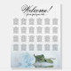 Add beauty, style, and class to your wedding reception with this beautiful 24 table seating chart. The stunning modern floral design features a single long-stemmed pale dusty blue colored rose lying on its side reflecting in a pool of water. It has space for 240 guests at with 10 seats per table. The elegant script calligraphy title reads "Welcome! please find your table" and there is space for the names of the couple and wedding date at the bottom. Romantic, graceful, classy, and glam, this chart is a wonderful way add a touch of elegance to your wedding reception while making it easy for your guests find their seats.