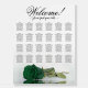 Add beauty, style, and class to your wedding reception with this beautiful 24 table seating chart. The stunning modern floral design features a single long-stemmed emerald green colored rose lying on its side reflecting in a pool of water. It has space for 240 guests at with 10 seats per table. The elegant script calligraphy title reads "Welcome! please find your table" and there is space for the names of the couple and wedding date at the bottom. Romantic, graceful, classy, and glam, this chart is a wonderful way add a touch of elegance to your wedding reception while making it easy for your guests find their seats.