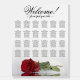 Add beauty, style, and class to your wedding reception with this beautiful 24 table seating chart. The stunning modern floral design features a single long-stemmed red rose lying on its side reflecting in a pool of water. It has space for 240 guests at with 10 seats per table. The elegant script calligraphy title reads "Welcome! please find your table" and there is space for the names of the couple and wedding date at the bottom. Romantic, graceful, classy, and glam, this chart is a wonderful way add a touch of elegance to your wedding reception while making it easy for your guests find their seats.