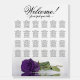 Add beauty, style, and class to your wedding reception with this beautiful 24 table seating chart. The stunning modern floral design features a single long-stemmed deep royal purple colored rose lying on its side reflecting in a pool of water. It has space for 240 guests at with 10 seats per table. The elegant script calligraphy title reads "Welcome! please find your table" and there is space for the names of the couple and wedding date at the bottom. Romantic, graceful, classy, and glam, this chart is a wonderful way add a touch of elegance to your wedding reception while making it easy for your guests find their seats.