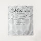 25th Anniversary Welcome wall tapestry with fancy black script text over FAUX silver diamond pane background (which can be removed for a plain background in advanced edit mode). The word "welcome" is an IMAGE printed in flat ink and cannot be edited. All other text can be fully edited. Pick your size and customize the text, or click "Customize further" to change the background color and font size or style.