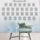 This beautiful 30 table wedding seating chart features a timeless classic floral design with a single long-stemmed pale dusty blue colored rose reflecting in a pool of water. The chart has table assignments for 300 guests with a traditional layout of 10 seats per table. The title is written in elegant script calligraphy and reads: Welcome! Please find your table. The names of the couple and wedding date appear at the bottom. Wonderful way to add romance, class, and stylish elegance to your reception while making it easy for your guests to find their seats.