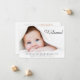 Cute and simple photo birth announcement. Your newborn's photo fills the front and is overlayed with "Welcome!" in a contemporary script (you can move this text to another area on the card to suit your photo by selecting "edit in the design tool"). Add his or her name, arrival date and birth stats. On the reverse side, add four additional family photos, a "welcomed by" message and the parent's and sibling's names.