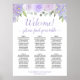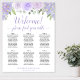 Welcome your guests to your wedding reception with this 6 table boho chic seating chart. The design features a hand painted watercolor droses, blossoms, and flowers in shades of lavender, lilac, and dusty purple, along with garden greenery, eucalyptus leaves and foliage. The elegant script calligraphy title reads: Welcome! Please find your table, with space for the couple's names and wedding date at the bottom. Has seating assignments for up to 60 guests with 10 seats per table. Wonderful way to add beauty and charm to your reception while making it easy for your guests to find their seats.