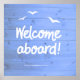 Colourful maritime poster with the words Welcome Aboard, in a nautical white font. Gorgeous bright blue wood effect background and white seabirds flying above. Great for maritime and nautical themed rooms, boat clubs and beach bars. Or as a gift for the sailor or captain of the ship in your life. Look out for co-ordinating products within my store.