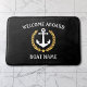 Welcome Aboard Boat Name Anchor Gold Laurel Black Bath Mat