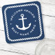 Welcome aboard boat name anchor rope dark blue beverage coaster