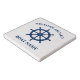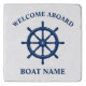 Welcome Aboard with Your personal Boat Name or other Text in Navy Blue with a Custom Ships Wheel Helm on a 6-inch Marble Trivet.
