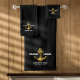 These personalized bath towels feature a classic nautical anchor design on a deep black and gold background. Customize the towels with a name or short message to create a unique gift for yourself or someone special. The soft, absorbent cotton will make your bath time a relaxing experience.