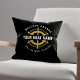 Add a touch of nautical charm to your home with this personalized pillow! Featuring a classic ship's wheel design, encircled by rope, and personalized with your boat's name, this pillow is perfect for boat owners, lake houses, beach homes, or anyone who appreciates a nautical theme. The rich Black and Gold fabric provides a sophisticated backdrop for the crisp white design.