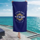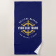 Welcome Aboard Nautical Boat Name Navy Blue & Gold Beach Towel