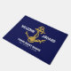 Make a statement with this stylish nautical Navy Blue and Gold doormat! A beautifully detailed anchor is the centerpiece, personalized with your boat's name and a "Welcome Aboard" greeting. The perfect addition to any boat, dock, or coastal home.
