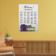 This gorgeous wedding seating chart features a photo of a long-stemmed amethyst purple colored rose lying on its side reflecting in a pool of water with waves and ripples. The main title reads "Welcome!" with subtitle reading "please find your table" in elegant lacy script calligraphy. There is space for the up to 200 names with the names of the couple and wedding date below. Wonderful way to help your guests find their tables while making your reception more beautiful.
