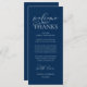 Make a heartfelt first impression at your wedding reception with this sophisticated "Welcome & Thanks" place card—designed to rest beautifully on each guest’s plate, in navy blue theme. Featuring graceful script typography and a timeless layout, this elegant card warmly greets your loved ones while expressing gratitude for sharing your special day. Ideal as a dual-purpose place card & welcome note—combine sentiment and function without cluttering your tables-cape. Designed for couples who value refined details, this card complements modern and luxe wedding themes. Print on premium card stock for a luxurious finish that guests will cherish (or even keep as a sweet keepsake!). Because love is best served with gratitude.