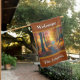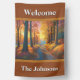 Welcome sign autumn woods house flag. Beautiful autumn meadow. Lots of beautiful art in my stores. Add this art to other products, change to your own text.