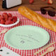 Personalize this polka dotted and green plate for a welcome baby party.