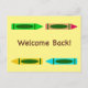 The backside of this Welcome back school themed postcard has four lines of editable text.