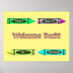 Four blocks of customizable text highlight this Welcome Back crayon design poster suitable for any classroom.