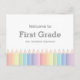 Get ready to start the new school year with a splash of joy and excitement with our Colorful Welcome Back to School Postcard Template. This bright, cheerful design features a rainbow palette of pencils that will make your students feel special and welcomed. The theme is trendy yet warm, a perfect combination to set a positive and engaging tone for the upcoming academic year. Customization of this postcard template is a breeze, add your message in the "personalize this template" details section. There is no minimum requirement, order as many or as few as you need. These adorable postcards are perfect for first-grade or preschool teachers to welcome their new batch of students to class in a fun, unique way!