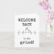 Welcome back to the grind, a play on words, funny coffee lover card.