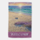 Welcome To our Beach House garden flag. Beautiful ocean shore and waves with sand and surf. Lots of beautiful art in my stores. Add this art to other products, add your own text or edit text.