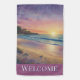 Welcome To our Beach House garden flag. Beautiful ocean shore and waves with sand and surf. Lots of beautiful art in my stores. Add this art to other products, add your own text or edit text.