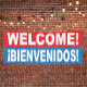 Welcome Bienvenidos bilingual banner in English and Spanish for your conference, event, or business.