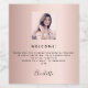 Welcome birthday photo rose gold pink guests wine label