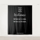 A display image is near the top. You can replace the image with your logo or a photo. White script forms display text for you can edit if desired to create a custom message. (Shown: Welcome) Additional lines of display text are under the script. You can edit the display text to create custom text. All text is white. The tapestry is black.