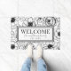 Welcome guests in style with this personalized welcome mat featuring your family name, a warm "Welcome" message, and your "Established" year. The design showcases elegant black-and-white floral and botanical outlines, with anemone blooms, buds, and leaves creating a sophisticated pattern around a central rectangle. The mix of delicate script typography and serif font adds a classic yet modern touch, perfect for adding a stylish vibe to your entryway. You can easily customize the text and colors to match your personal style, making it a versatile addition to any home. Or you can change it to work for a wedding planner office or a florist for example. Personalized Welcome Doormat Family Name Black White Floral Pattern Home Decor Housewarming Gift
