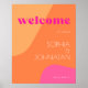 Abstract shapes retro vintage 70s style unique groovy wedding welcome sign poster template with bold typography in a vibrant trendy modern hot pink magenta and orange chic color palette. +++++++ Please note that all the colors are changeable. ++++++++++++ Suitable for casual stylish contemporary weddings.
